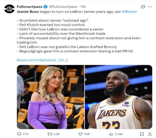 ESPN报道:珍妮的怒火不只针对詹姆斯湖人队也难逃一劫_NBA直播