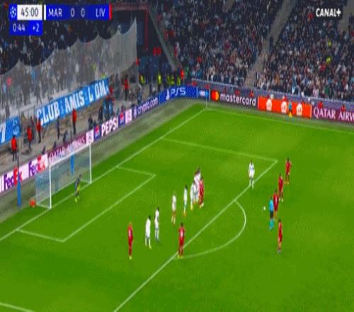 索博任意球破僵局,萨拉赫回归铁卫造乌龙,利物浦30完胜马赛