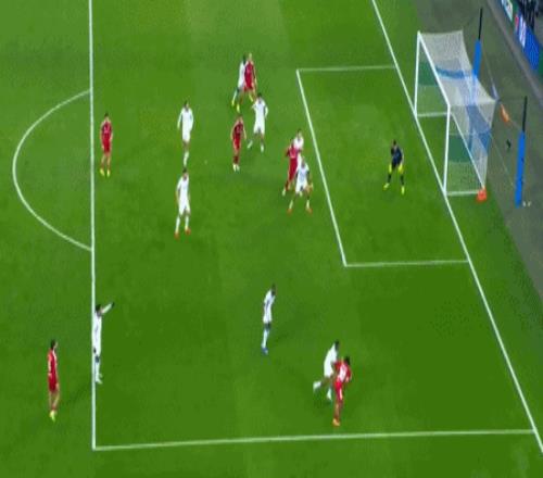 第40分钟,弗林蓬右路突破传中,萨拉赫抢点脚后跟巧妙打门,擦着横梁上沿稍稍高出。