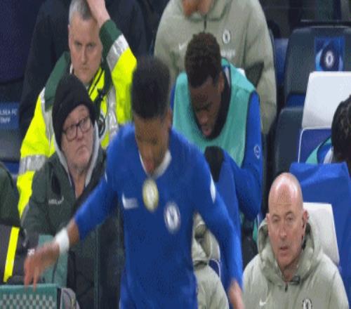 第17分钟,恩佐头球破门,裁判判罚进攻犯规进球无效
